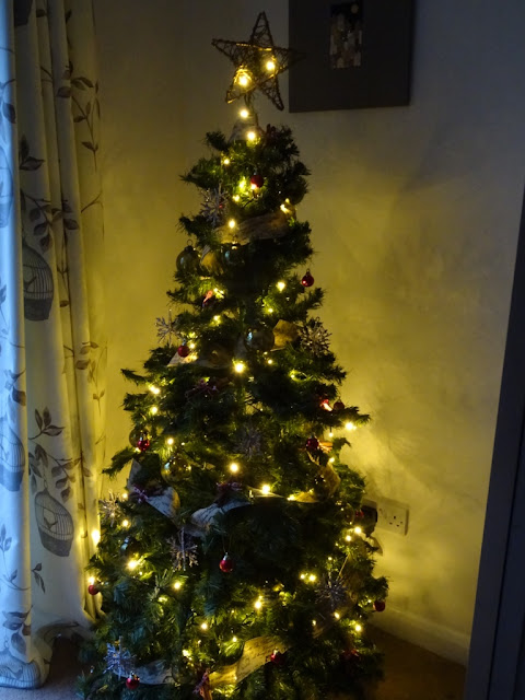 This is a new position for our tree; we threw out our old pc which used to sit here.  I did wonder if the cats would show an interest in the tree as it sits on the floor, but they haven't touched it!  I don't think my cats are normal! :)